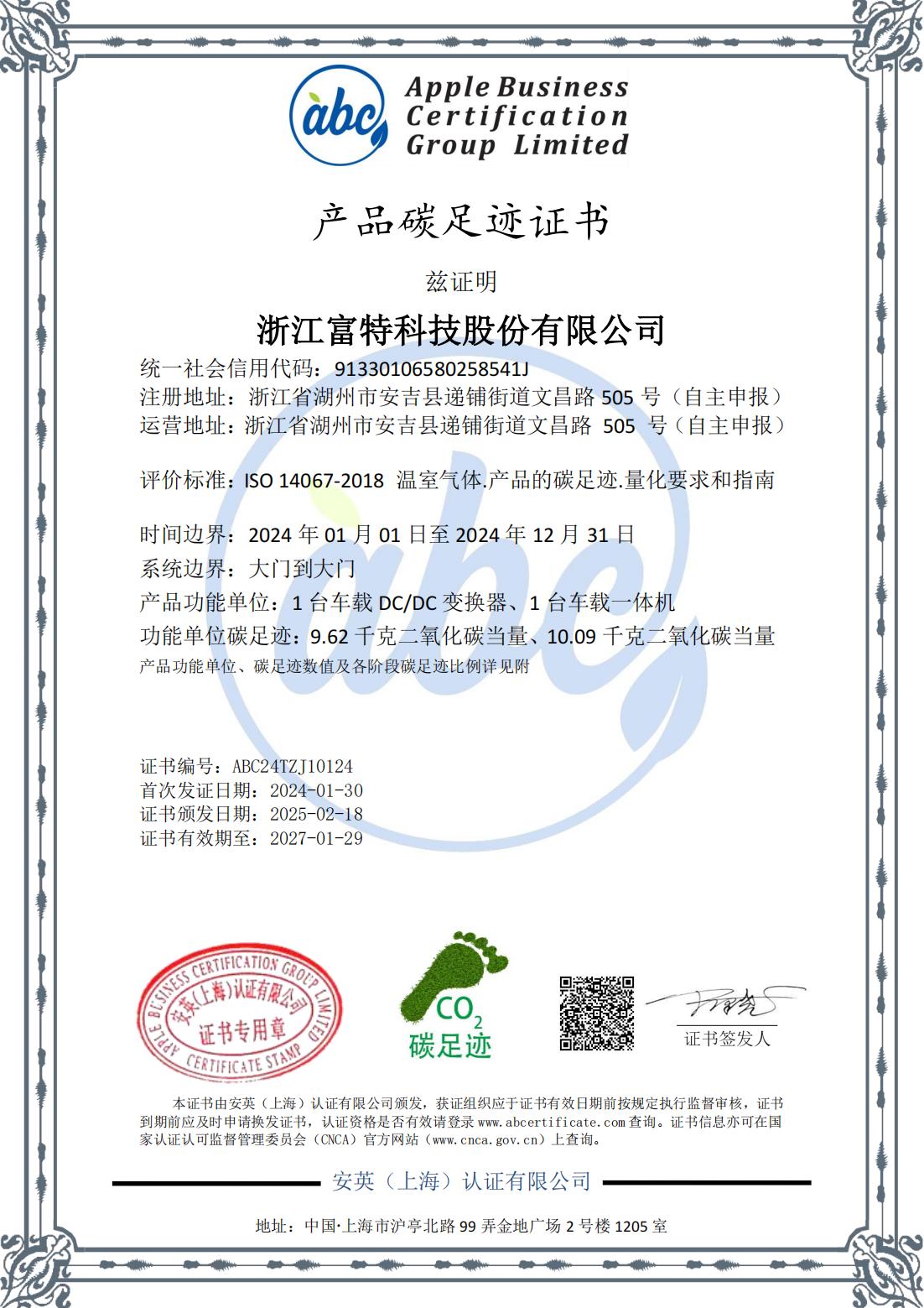 浙江富特科技股份有限公司,成立于2011年8月,生產基地位于湖州市安吉縣,研發中心位于杭州市西湖區、西安市高新區,是一家專注于新能源汽車核心零部件的國家級高新技術企業,是國內新能源汽車車載充電機及車載 DC/DC 轉換器的主要供應商。